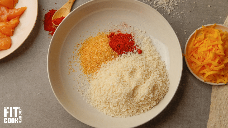 - In one bowl, beat one egg. In a separate bowl, combine panko breadcrumbs, garlic powder, smoked paprika, salt, and pepper.