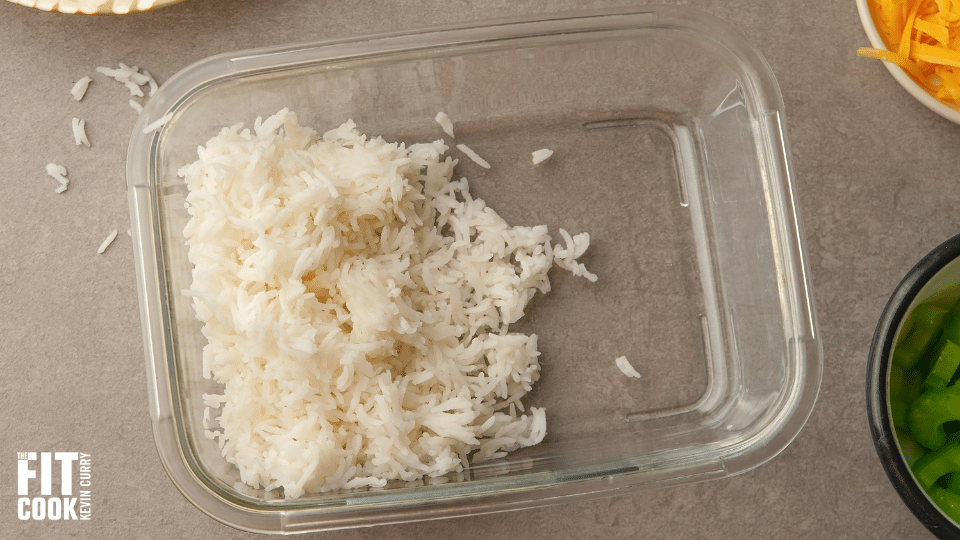 Start your buffalo chicken and rice bowl prep by cooking the rice.